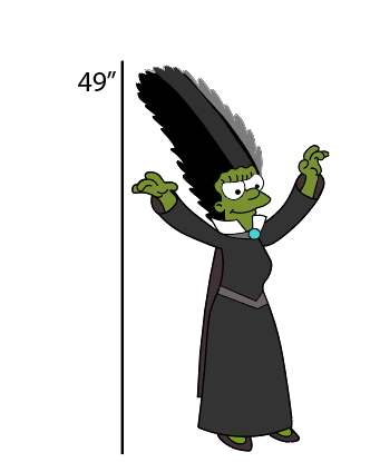 Transform your outdoor space with these Simpsons inspired decorations . Standing tall at 49", Bride of Frankenstein commands attention, while the Grim Reaper, at 45", adds a touch of dark humor. The Kids stand at 37", 36" and 24" Tall.