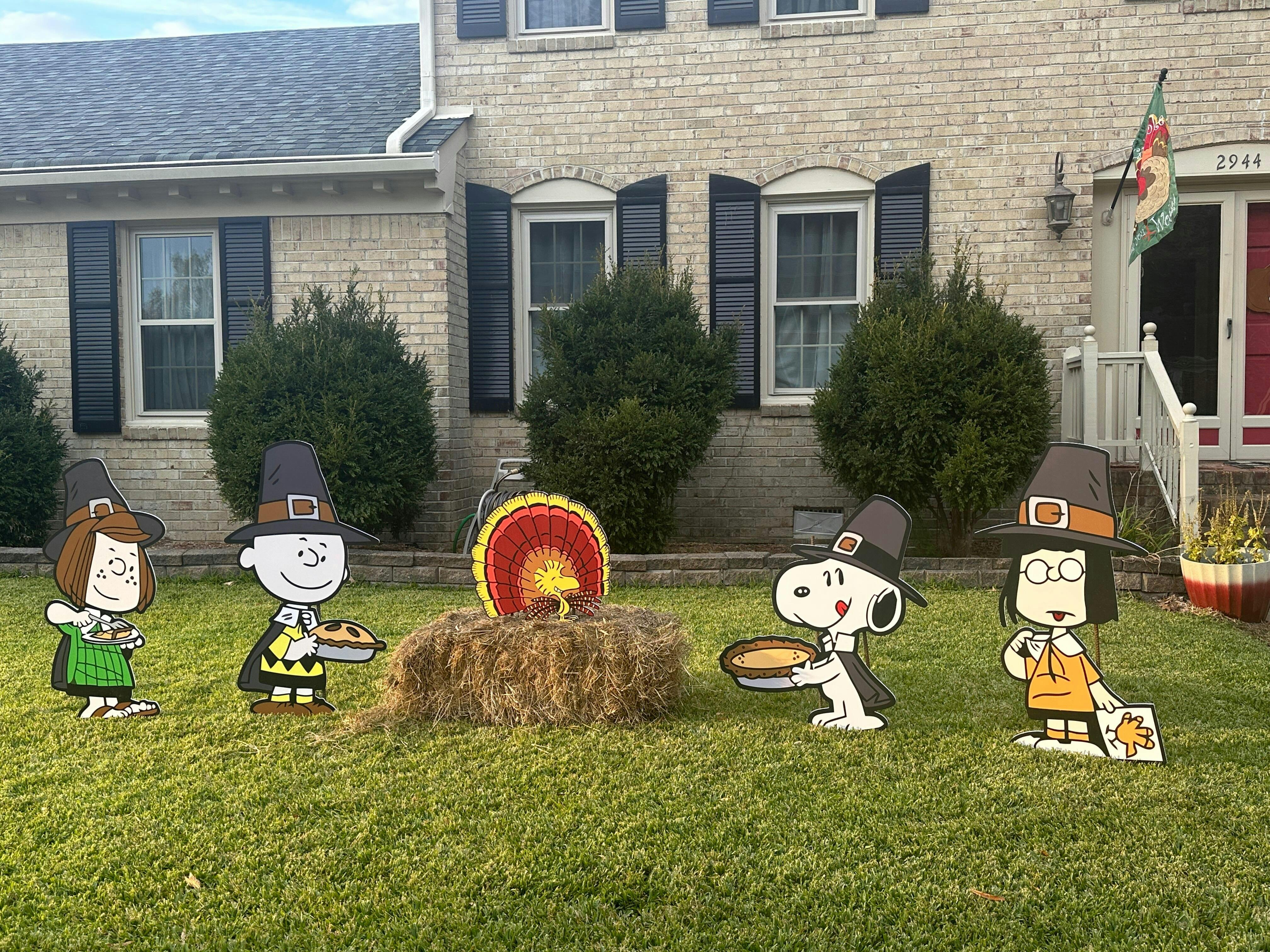 Good Grief! These peanuts are here to help you see the true meaning of Thanksgiving. Let Charlie, Snoopy and the gang have a place at your table this season with this Peanuts yard set!